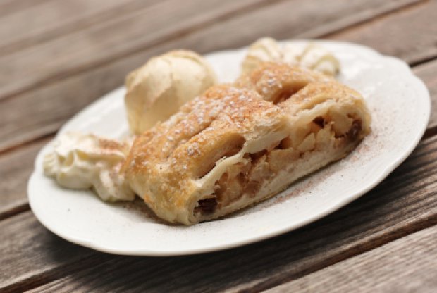 Marche à suivre: Zubereitung Weintrauben rebeln, waschen und gut abtrocknen. Eier mit dem Zucker sehr steif schlagen, anschließend mit Mehl, Vanillezucker und Zitronenschale verrühren. Die Strudelblätter auflegen, die Masse auf den Strudelteig streichen, Weintrauben darüber streuen, Strudelteig einrollen. Das Backrohr auf 180°C vorheizen, ein Backblech mit Backpapier auslegen. Den Strudel mit der Verschlussseite nach unten auf das Backblech legen, mit der flüssigen Butter bestreuen und 50 Minuten im Rohr backen. Vor dem Serieren mit Staubzucker bestreuen. |