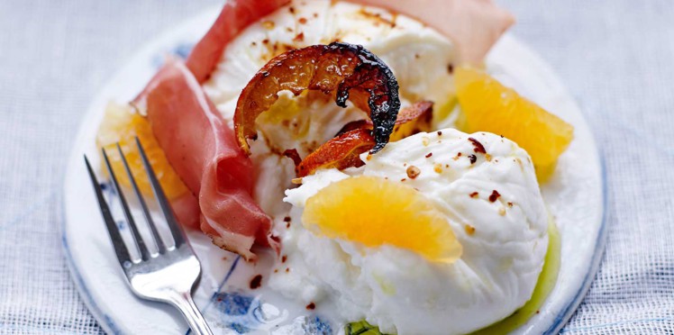 Nom de Recette: Burrata au speck et aux clémentines Soumis par: https://www.cuisineactuelle.fr/profile/public/thomas-clouet/author