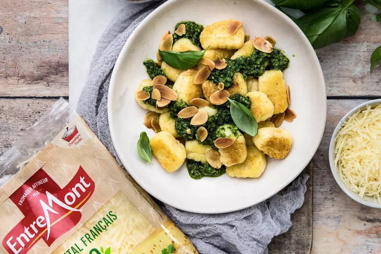 Nom de Recette: Gnocchis à l\'Emmental râpé bio Entremont et pesto d\'amandes Soumis par: