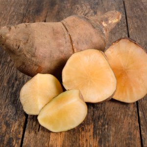 Yacon Die Yacon ist mit dem Topinambur verwandt und bildet ebenso Wurzelknollen aus. Sie müssen geschält werden und können roh als Snack, im Salat oder gegart verwendet werden. Die Knollen schmecken süß, weshalb aus ihnen auch Yacon-Sirup oder -Pulver hergestellt werden, die als gesunde Süßungsmittel gelten. Mit Yacon-Sirup kann man abnehmen, er senkt den Blutzucker und Cholesterin. Gleichzeitig fördert er als Probiotikum die gesunden Darmbakterien. Yacon wirkt zudem gegen hohen Blutdruck und Krebs.